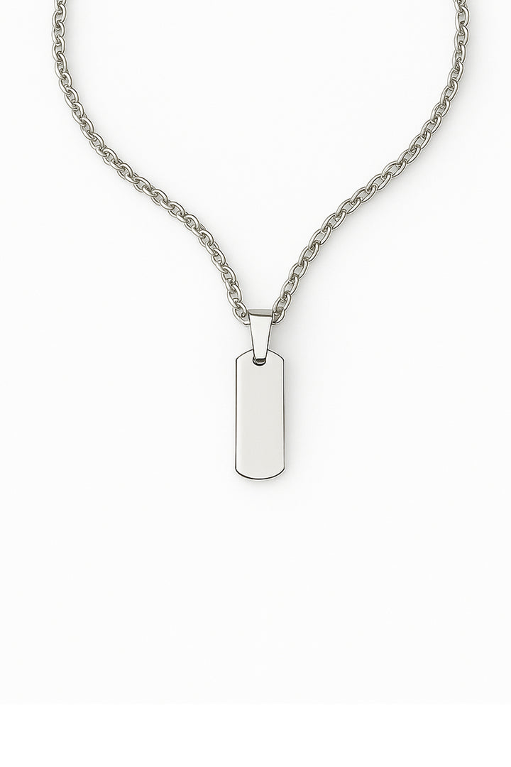 This silver-tone vertical bar pendant necklace offers a modern, layered look with two distinct chains. The 10mm x 40mm bar pendant, crafted from durable stainless steel, adds a touch of understated elegance. Choose your perfect length from 20"/50cm to 24"/60cm.